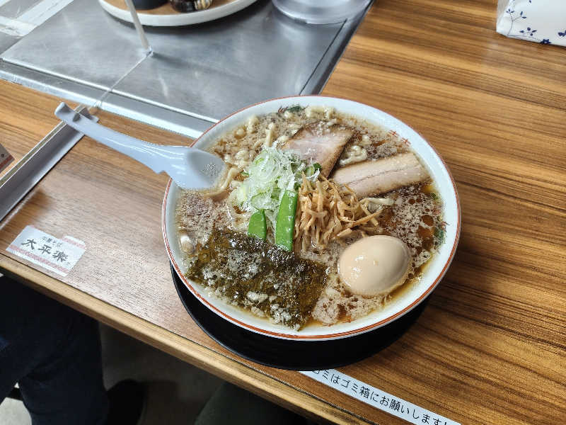 手揉み太麺のあごだしラーメンでした。Googleマップにて1200件以上の口コミあるだけあってレベル高かったです。当たり券がでて味玉サービスしてもらいました。