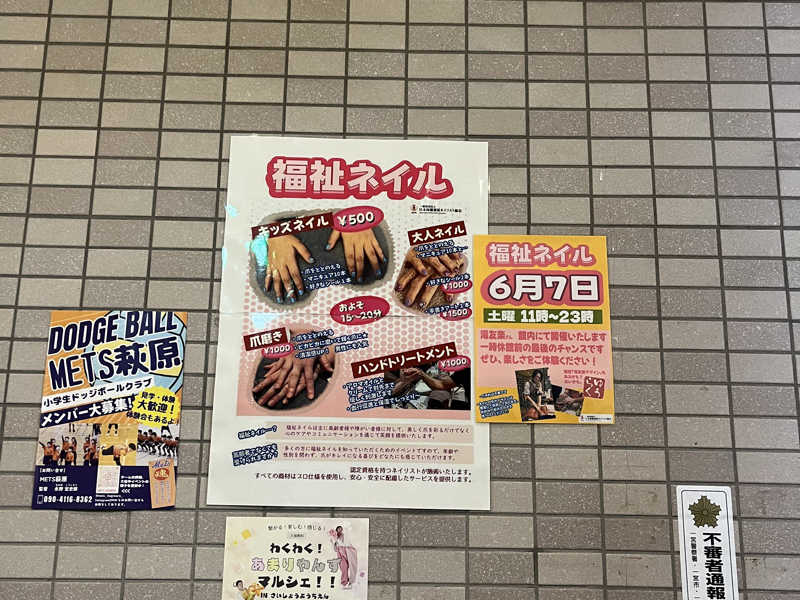 あっ、7日はユウラク様にて福祉ネイルイベント開催です!