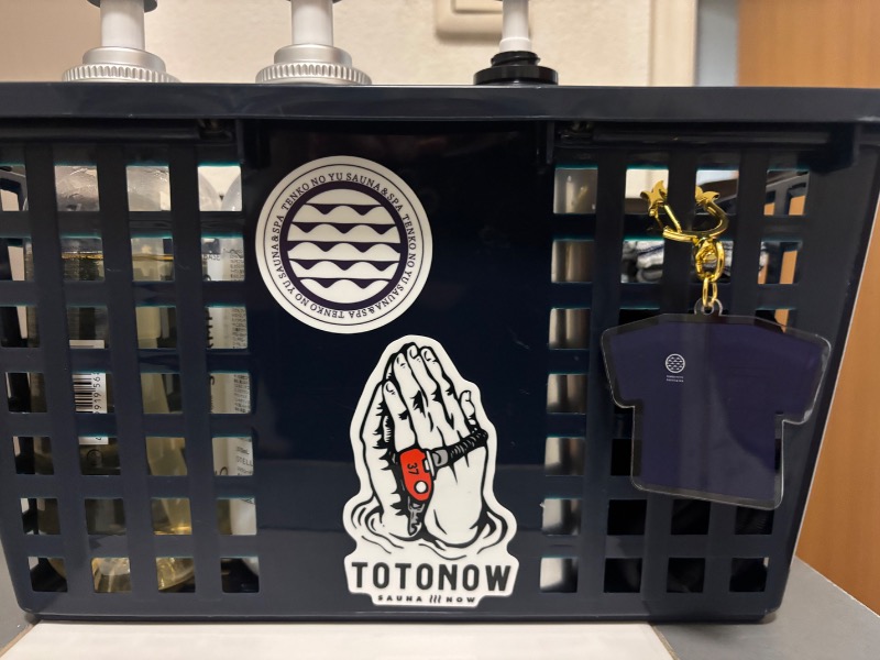 風呂カゴに天光シールをととのうシールが感謝し拝んでいるように貼り付け。