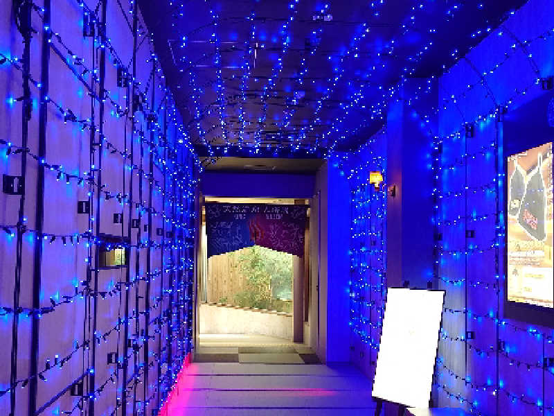 一番気に入ったのは露天風呂の天井にプロジェクターを吊るして壁に投影しているところ。