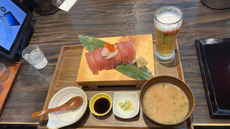 酢飯に大葉が混ざっていてマグロ、ホタテ貝柱が乗ってるのに1,500円くらい。 コスパ良し👍