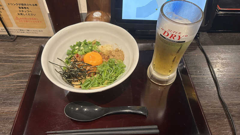 知らなかった💦飯頼むとサマードリンクでビールが100円だなんて✨ そりゃ飲みますとも🍺