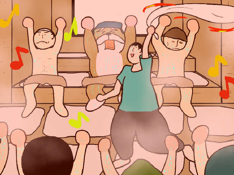 この日は妖怪カイカイ(サウナで汗だくで全身を掻き回し、汗を飛ばす者)に遭遇、汗飛ばされる😱
