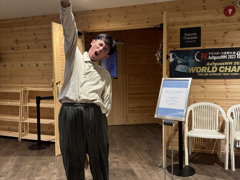 宇田蒸気さんのサたつシャツ、はまちさんのサウナピアシャツ着用してのアウフグース🌪️