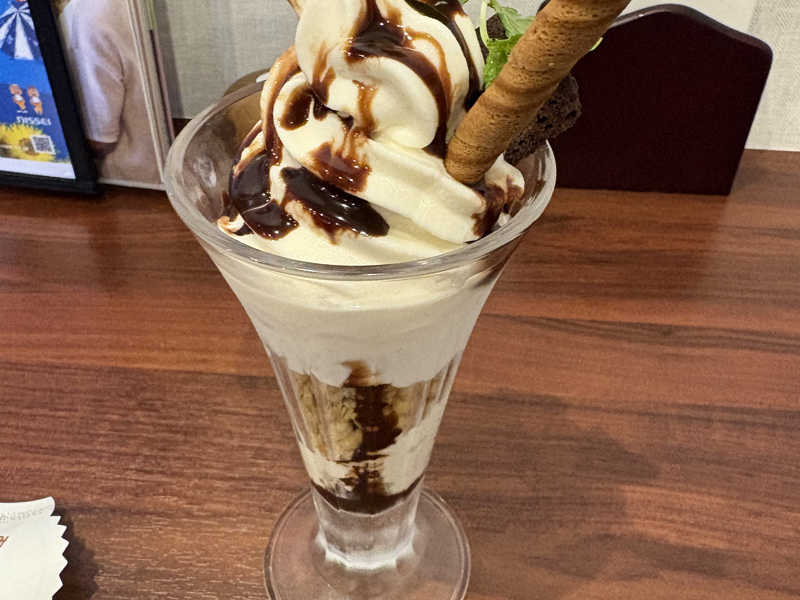 南鳩ヶ谷から歩いてきたので暑すぎてチェックイン後早々にパフェをいただき、すぐサウナへ