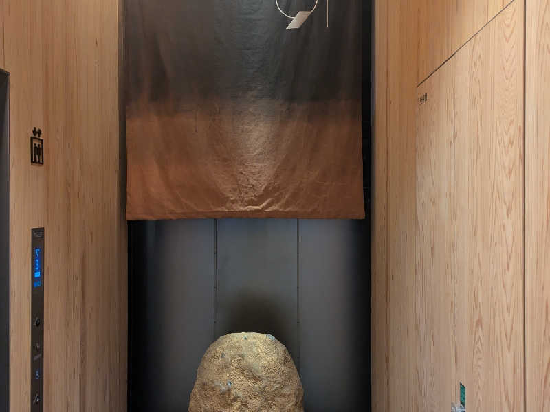 すごく綺麗で大きな空間に巨大ストーブ&ストーン。一人きりだったのもあり、まるで開演前のライブハウスのステージ? いやドラクエの格闘場? みたいな厳かな佇まい。