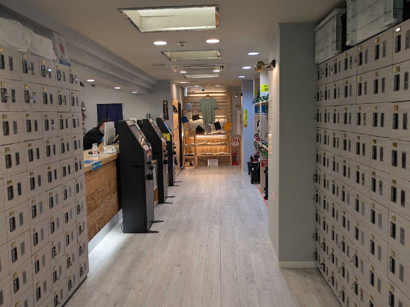 受付は2階なんですね。受付&休憩エリアもおしゃれな作り。自販機で入浴券を購入する仕組みですが、サウナ利用は無料で入浴代550円だけ。安いのはありがたいですがら大丈夫なのかと逆に不安になります。