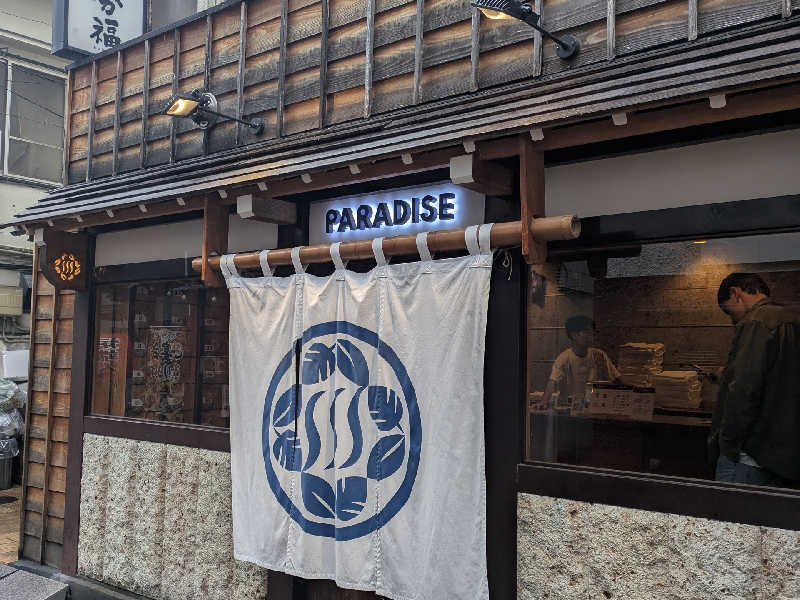 Paradiseと言う名前ですが、入り口から純和風のデザイン。靴箱も銭湯風木札ですし、中も提灯や畳の床の休憩スペースなど、Paradiseというか極楽浄土?の佇まい。