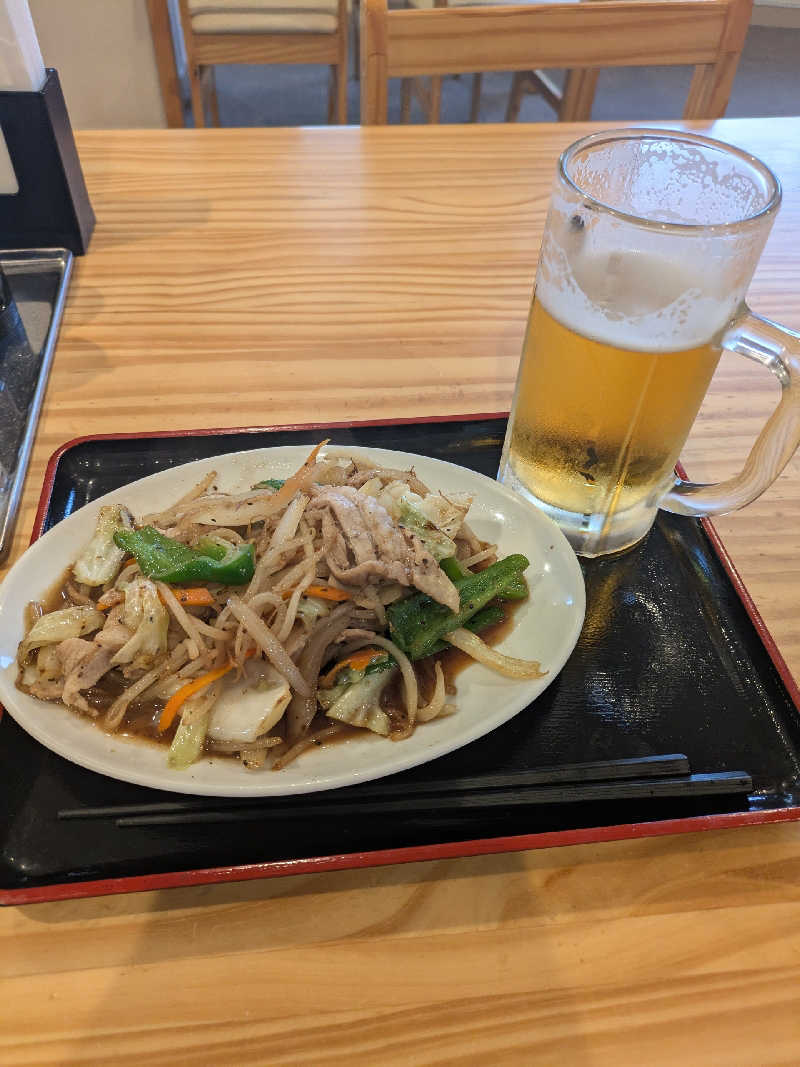 さてサ飯の方は、こちらも私調べで、燻製カレーと、生姜焼き、スタミナ炒めが名物とみて、スタミナ炒めを頼もうと思ってましたが、いざオーダーの時になぜか勘違いし肉野菜炒めをオーダー。食べ始めてから気が付きました(笑
