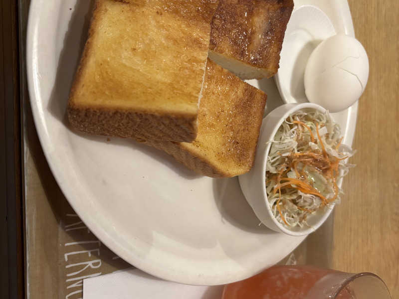 トースト🍞、サラダ🥗、ゆで卵🥚にソフトドリンク🍹まで付いて、お得🉐