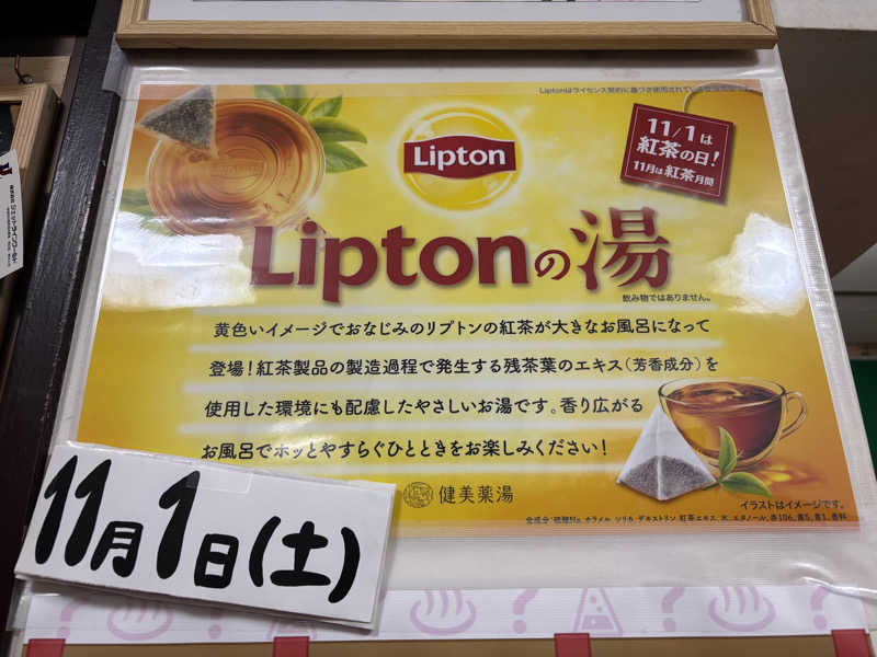 掲示されているポスターを見ると、11月1日は紅茶の日らしく、今日はLiptonの湯との事!♨️☕️✨