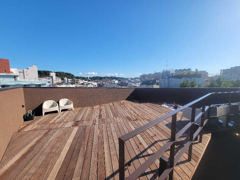 浅めの水風呂に入り、屋上外気浴エリアへ。