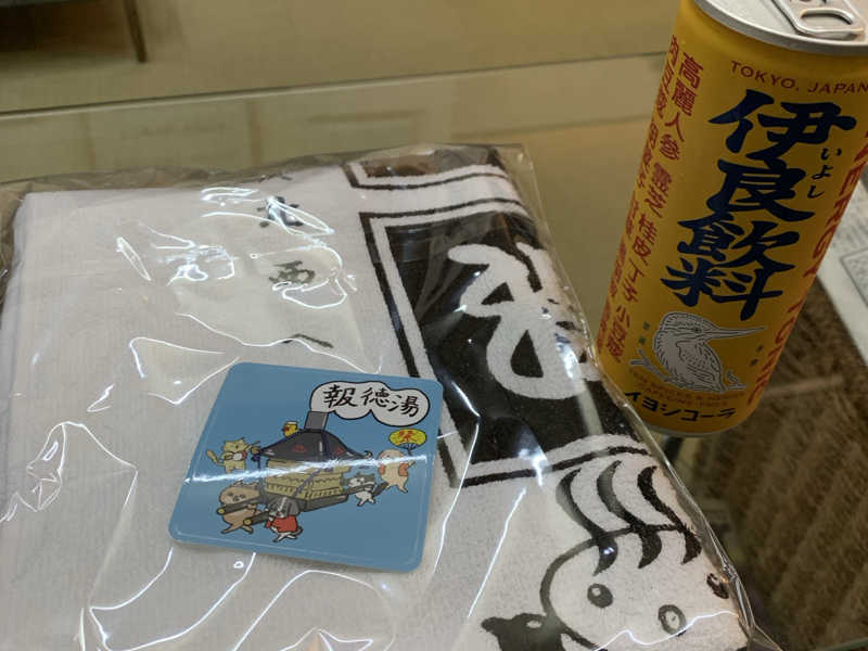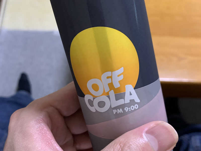 風呂上がりに伊良コーラでCHILLOUT。オリジナルタオルとステッカーを購入し、「また来ます」と告げ帰宅。