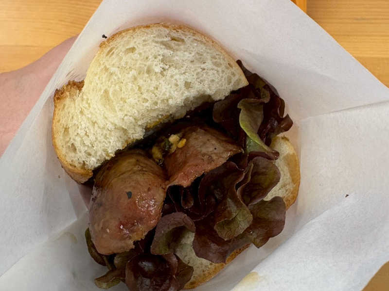 差し入れのパン🥖をさかな君が買ってきたファミチキ🍗挟んで🤭笑顔で食べてくれてた〜