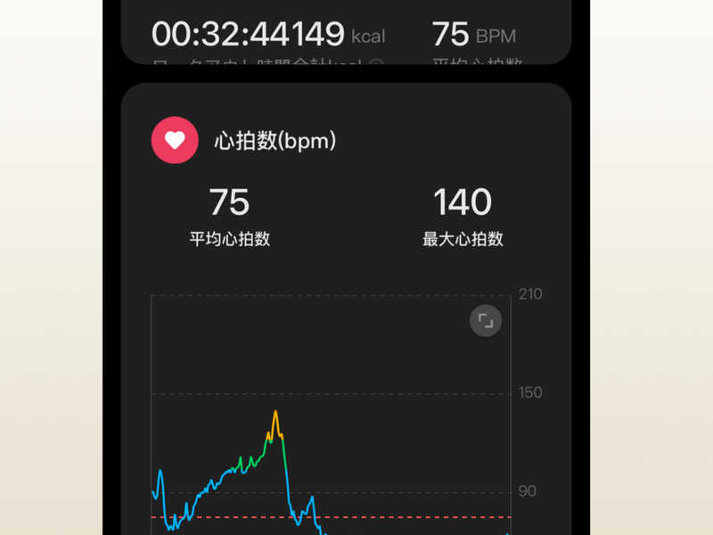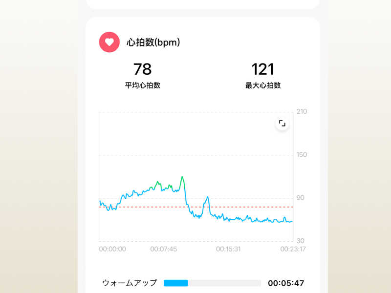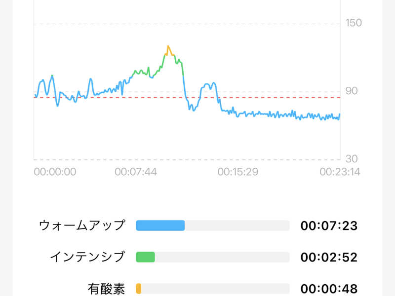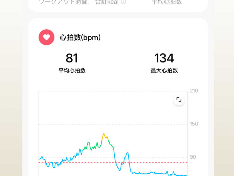 ↓初めてはいるサウナはやっぱり少し緊張してて高めな数字。