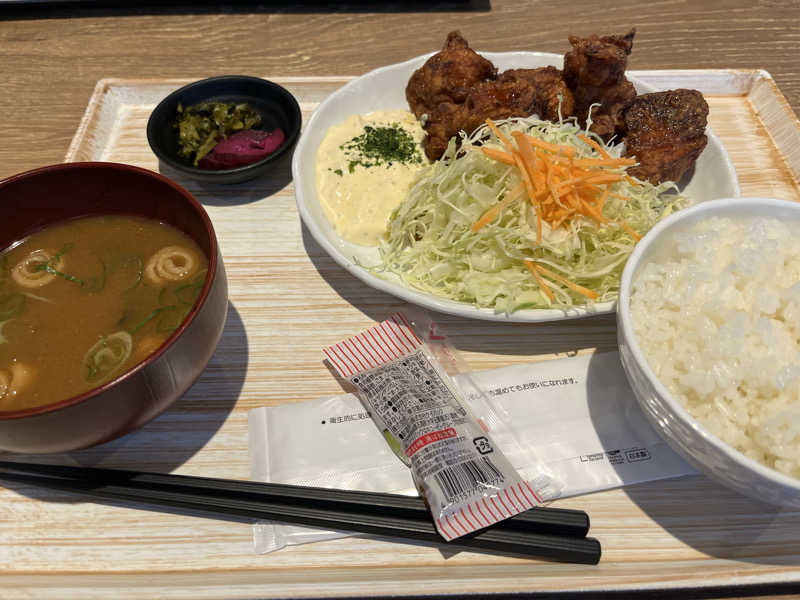 館内はできたばかりで、どこもかしこも綺麗。まずは腹ごしらえをしてから浴場へ。