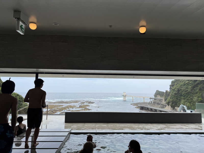 露天風呂での外気浴は全国唯一?のぶくぶく33.4℃の湯船に長椅子が敷かれており、もう最高!!!