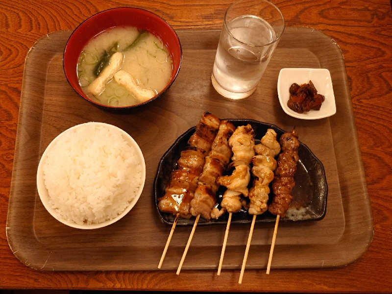 昼も焼き鳥弁当を食べたけど、帰宅途中お腹が減ったので、居酒屋さんで本日2回目となる焼き鳥定食を🐔
