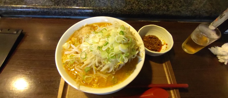 甘麹味噌ラーメン 昨日食べた夕食。野菜マシマシとノンアルを添えてガッツリ食べました。