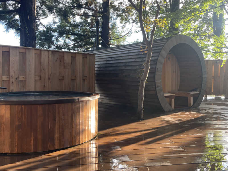 景色はありませんが、屋根があるので年中通して快適に外気浴できると思います。