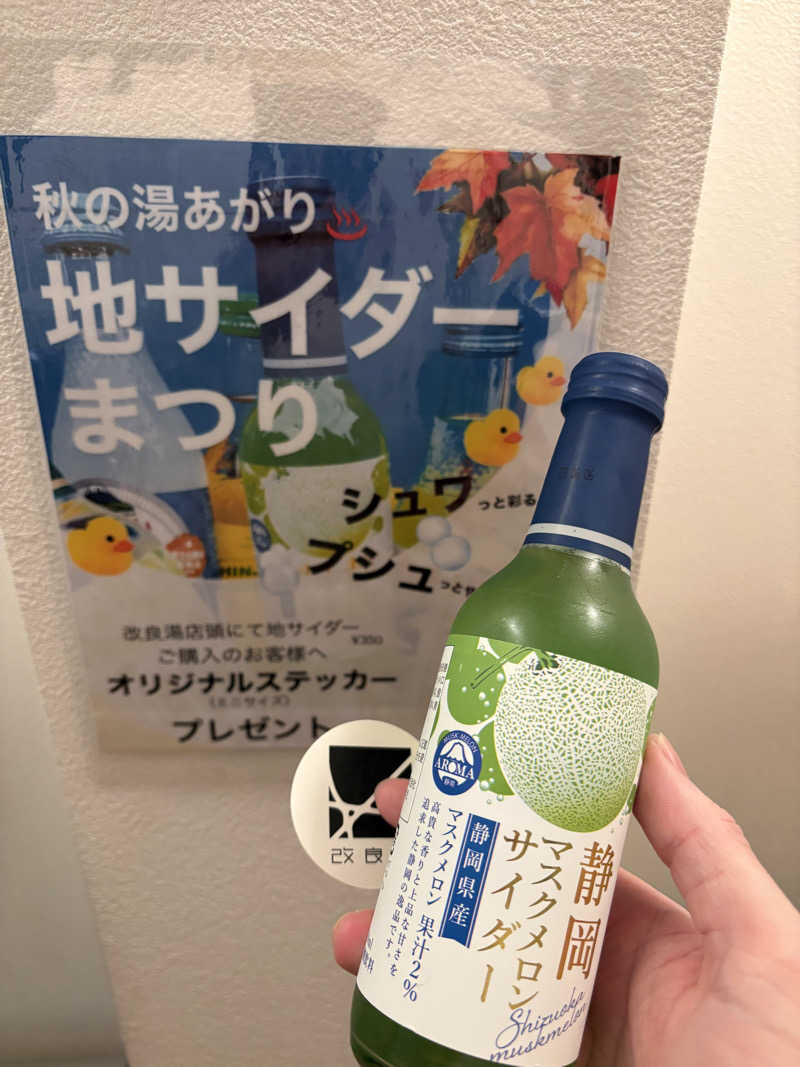最近は改良湯率高めである♨ 地サイダーまつりとの事で 静岡マスクメロンサイダーを飲みました🍈 プシュー シュワー 喉の奥が濡れていく感覚、最高です。 熱波師の改良くん?(さん) 良い人感でてる、またこの人の熱波浴びたくなりました。
