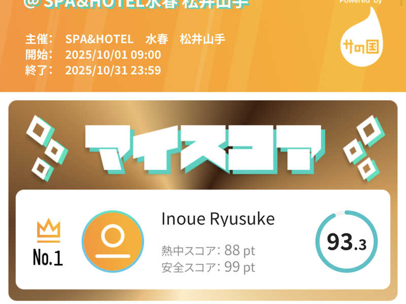 そういえば、松井山手 水春のトトノイ-1でランキング1位取れました😆