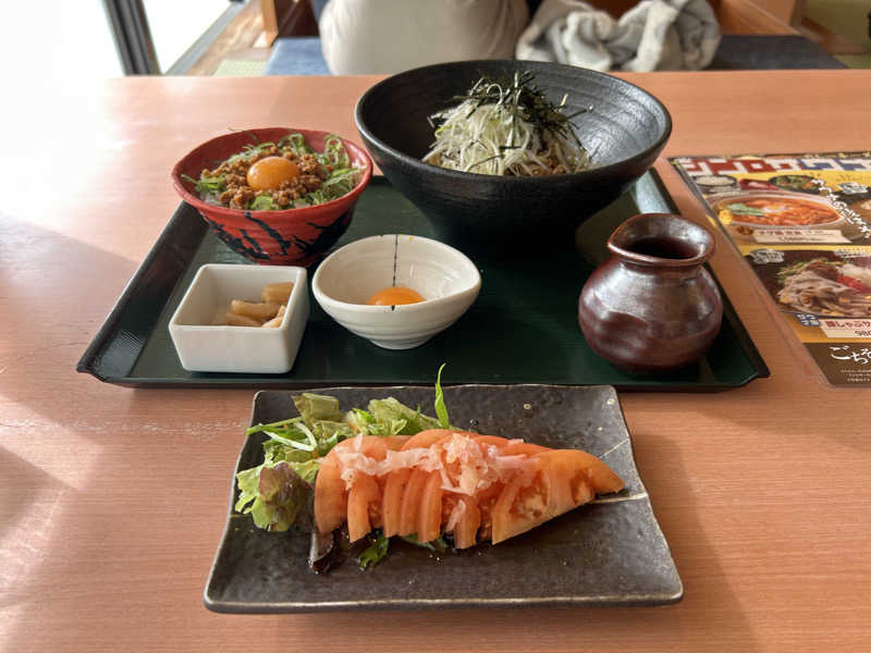 サ飯も安定の肉混ぜそばとガリトマトを注文🍴