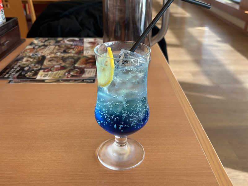 なんと新しいサウナドリンクも出てて、本日はこれを注文!その名も「さうなぁ〜ブルー🍸」