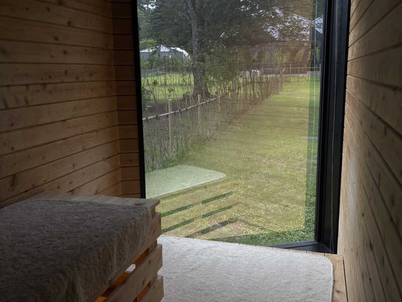 サウナ自体は1つしかありませんが、中は結構広めでセルフロウリュができ、会話OKでした。共用なので水着は着用ですが、水風呂とシャワーは男女分かれており、サウナ後は暖簾を潜ってシャワー→水風呂をして、整いチェアがある共有の外気浴スペースに行くという流れでした!そしてその外気浴スペースから見える富士山🗻がとっても綺麗で本当に最高でした✨