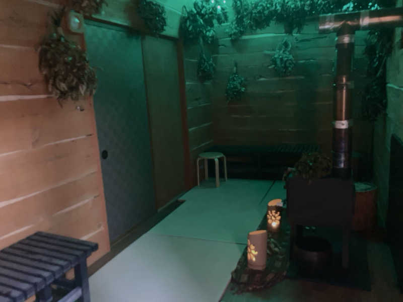 ヒーリングサロンのような室内。わずかな光、ウィスクの香り、ヒーリングミュージック。それと畳敷き。いつか何かが脳に直接語りかけてきそうな『ギャラクシーととのい』が出来るかもしれない…。