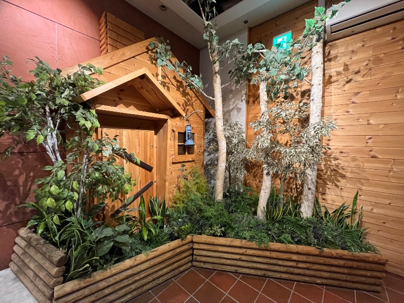 やっぱヒーター横の3段目焼けそうな熱さ🔥一方、足湯エリアや寝湯エリアはジワジワ系。一つのサウナであれこれ楽しめる造りは流石です。一つ気になったのは川のせせらぎと鳥の鳴き声はちょっと要らないかな😅ほぼ貸切状態でしたので結構気になりました。