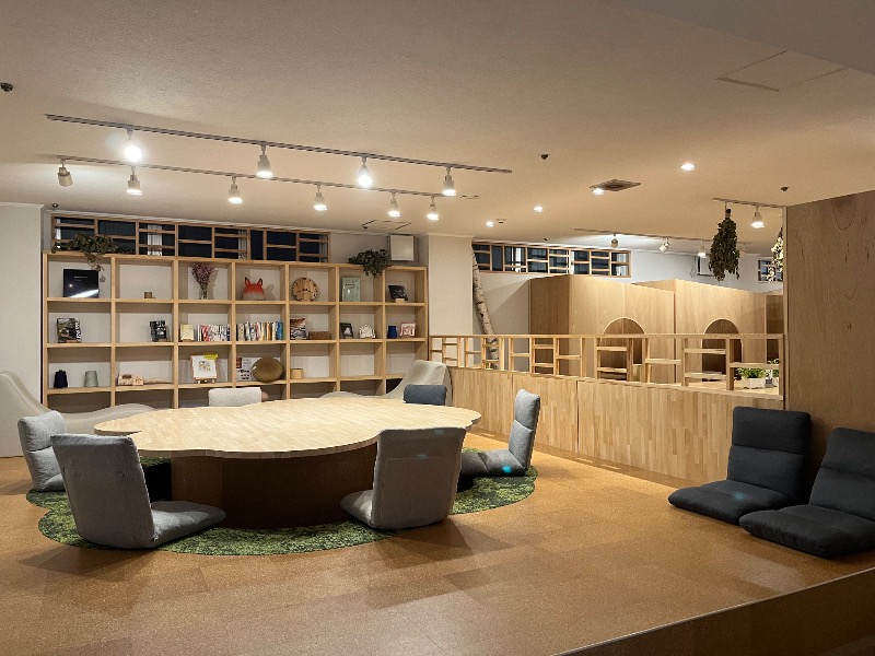 中に入ると歓迎され、靴を扉付きの指定番号の下駄箱に入れます。フロントで受付して館内説明とコース選択、ロッカーの鍵を受け取れば受付完了。料金は時間制で後払いでした。1階は貸切プライベートサウナで2階が男性パブリック利用となってました。貸切側も写真見るとなかなかですねー😅