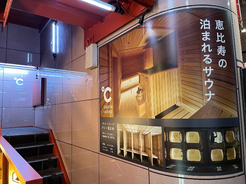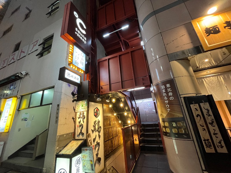 帰りの便まで少し時間があったので時間の有効利用で利用しました。前々から気になっていたサウナ施設?と思っていたのですが、いざ着いたら駅前立地のカプセルホテルと言う感じ😅恵比寿駅から徒歩数分と言う好立地にありました。