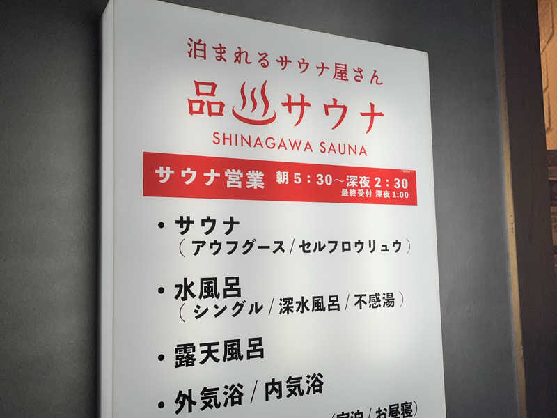 受けるのはお初。最初に「全部で4セットやります」と。なるほど、これはあれだな。品サ名物のロングランタイプだな。途中退室して屋上でととのって降りたらまだやってる、あのパターンだな。よし、そっちがそう来るならこっちも受けて立つ。覚悟はいいか俺はでき「これで1セット終了です」。え、もう?意外な展開。そのままトントンと進み、最終4セットは倍増ロウリュでアチアチになるも、トータル15分ほどで終了。なんて書くと物足りなそうだが、実はこれはこれで、ものすごく良い!こまめな換気もあり最後までじっくり堪能。フラフラにならず、ぴったり気持ち良いところで終わる丁度良さ。香盤表に名前あったら次から狙って入るかも。