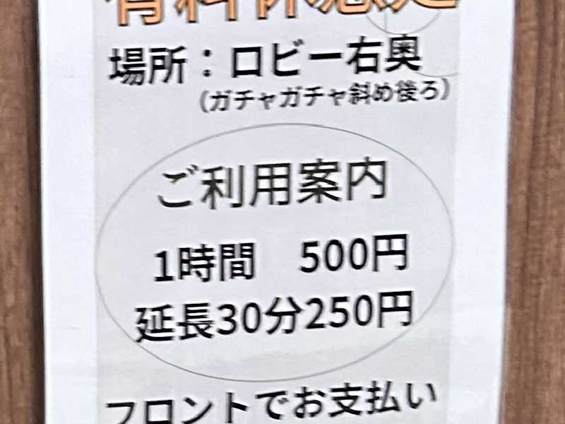 ちなみに、施設に休憩スペースはあまりなく横になることは難しそうです。有料で休憩処があるようですね。