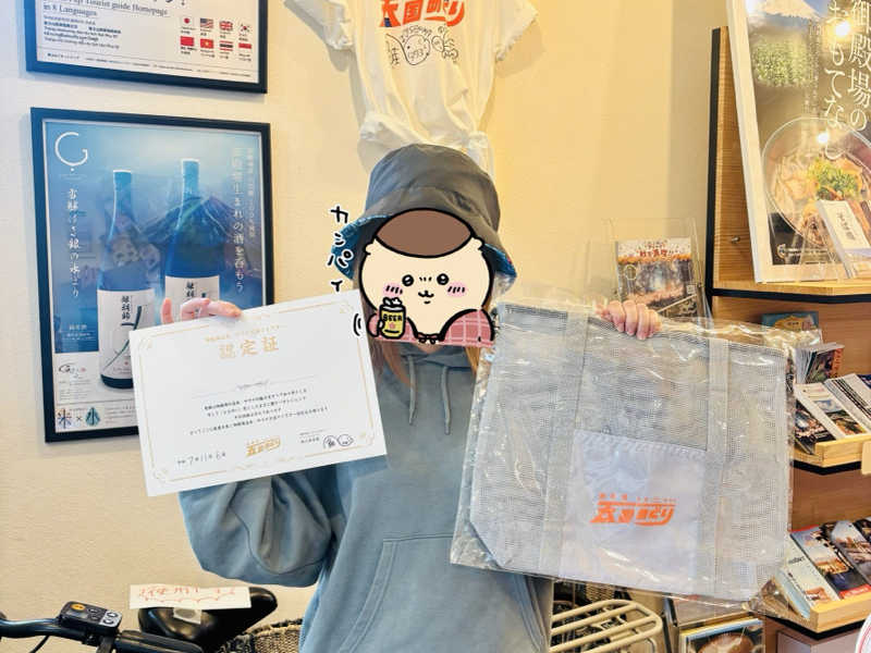 天国めぐりののれん見つけられなくて店員さんに聞いたら写真撮ってくれました📸
