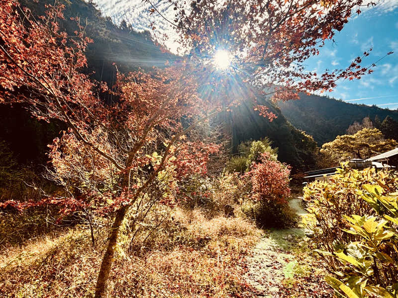 川の音をBGMに青空と紅葉を眺めて自然と一体化🏞️🍁