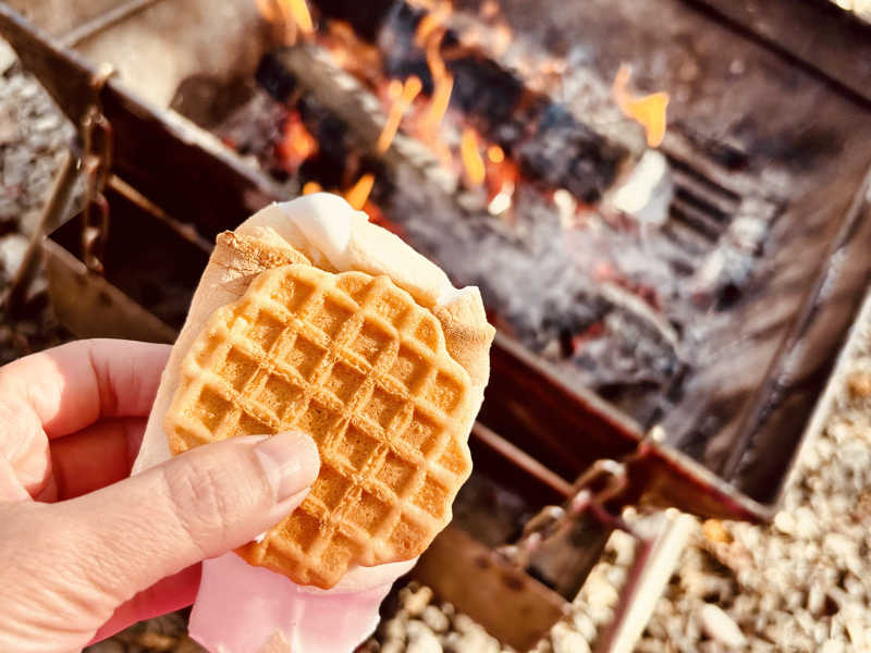 おかしゃんがワッフル用意してくれたからスモアも楽しめたよ〜🧇✨