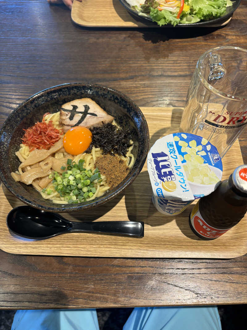 まず入る前にサ飯(塩まぜそばとオロックス🍺)