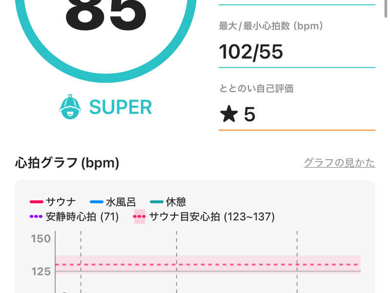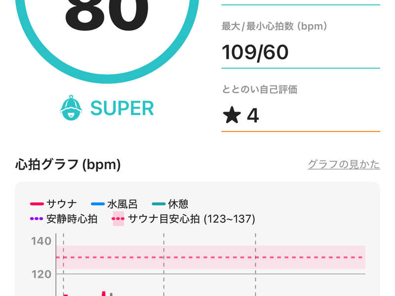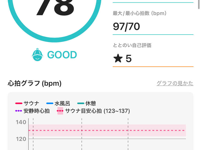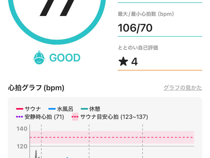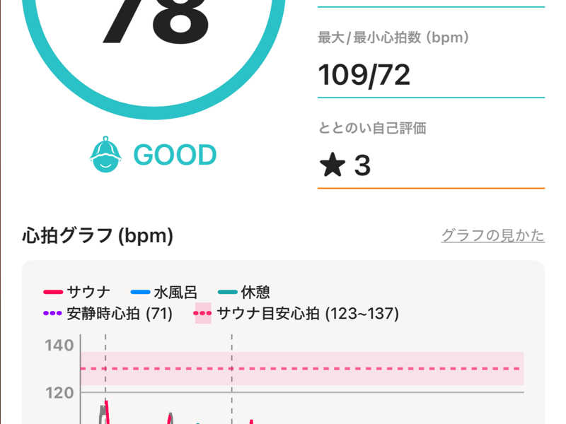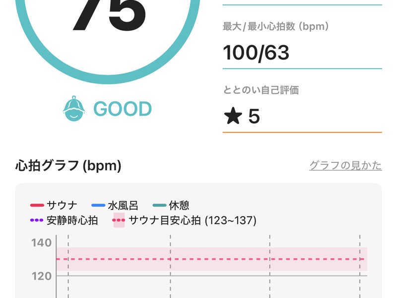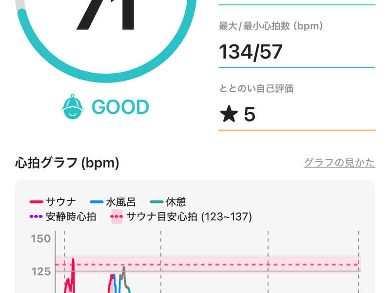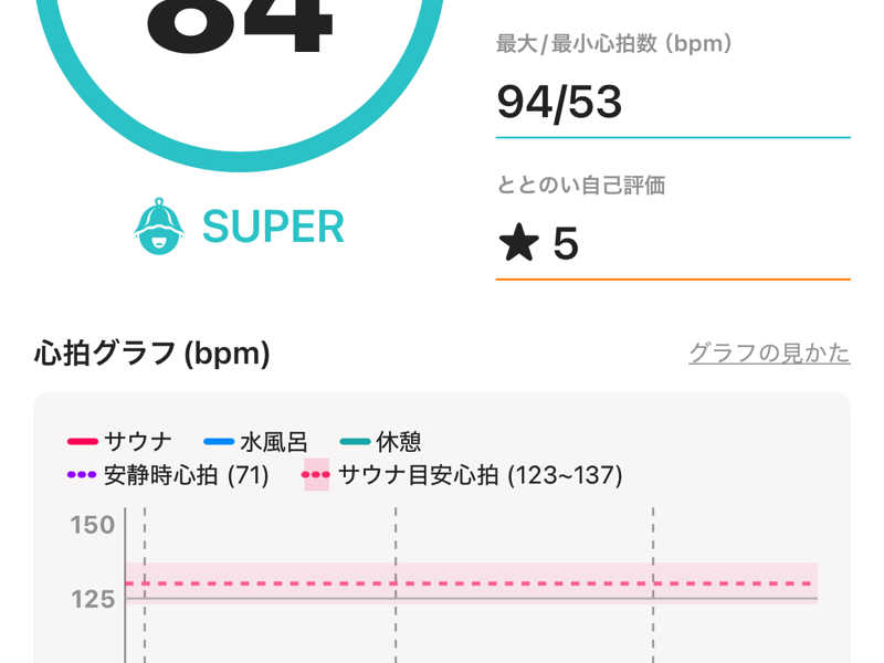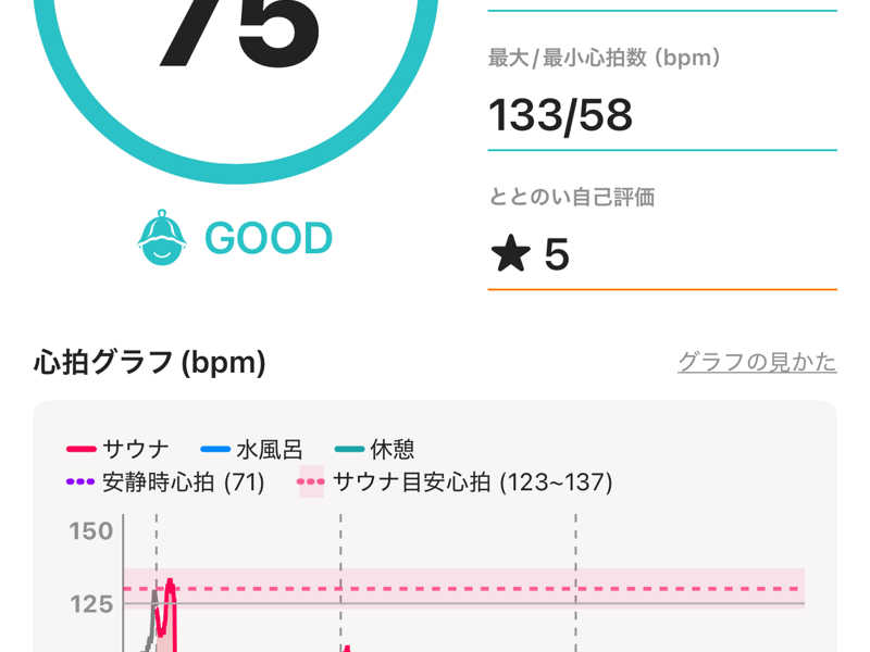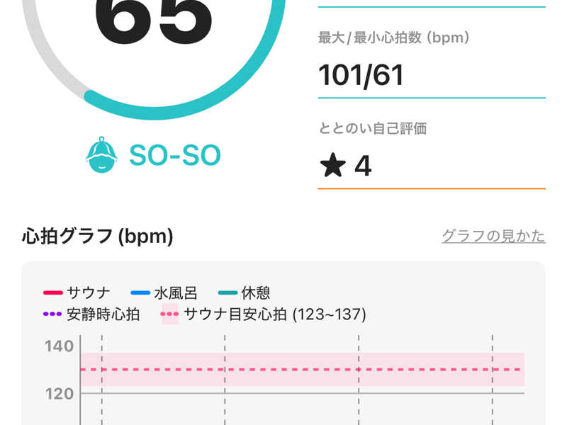 いつもいる常連?のおじさんが体の汗を拭く時の音や、喋り声がイライラ😖!ちゃんとゆっくり入れなかったし、水風呂も長く入れなかったな💦。整い値も最低だ!