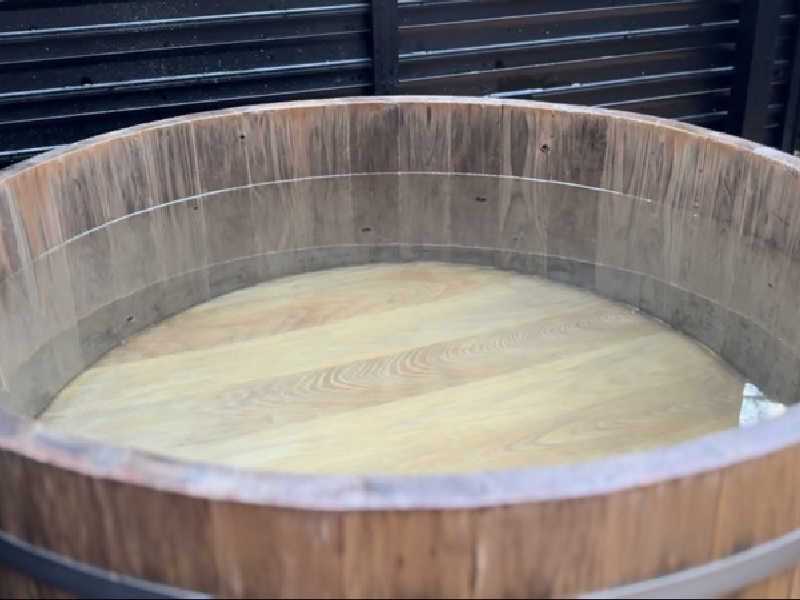 山賊サウナさんの名物、大きい樽水風呂、僕の身長だと足届かなかったです笑