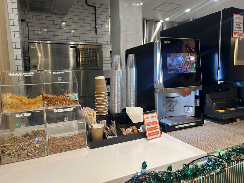 駅出て1分、立地最高✨下駄箱とロッカーは100円リターン式。券売機で入館チケット買って、受付でイオンウォーターも購入。食事処美味しそ〜🤤と眺めつつスルーし浴室へ直行。アメニティは銭湯クオリティ、全て持ってくべし。爆速で洗体して、サウナへ🧖♀️