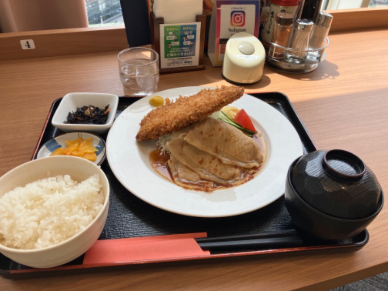 サバのフライと生姜焼き、ドリンク付きで900円。