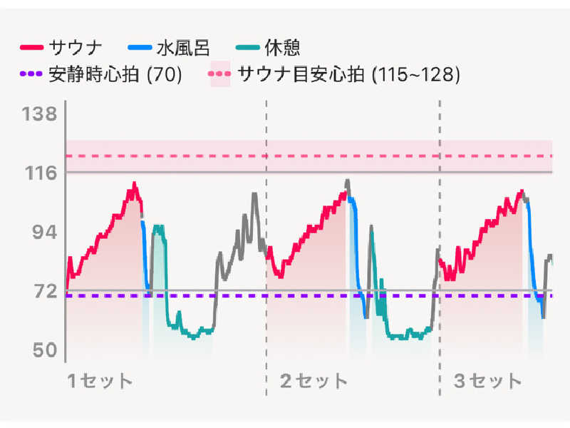 サウォッチの各モード(サウナ→水風呂→休憩)