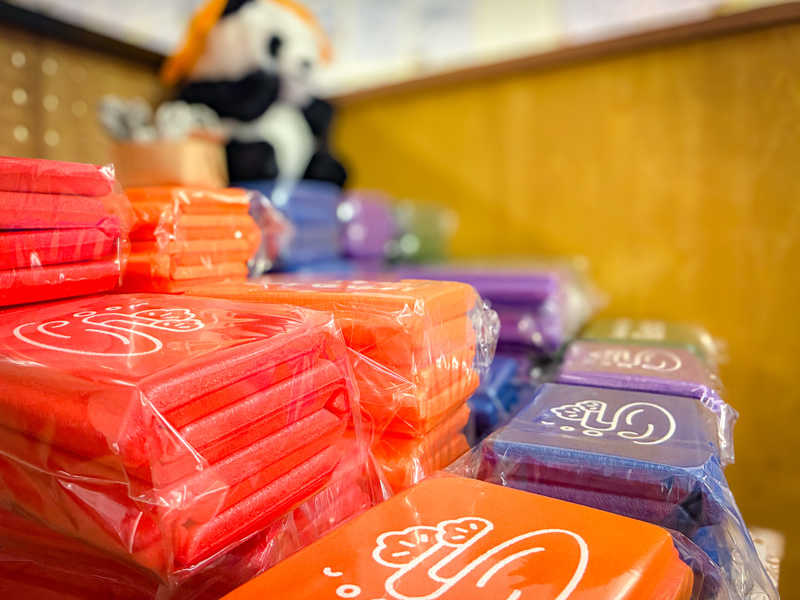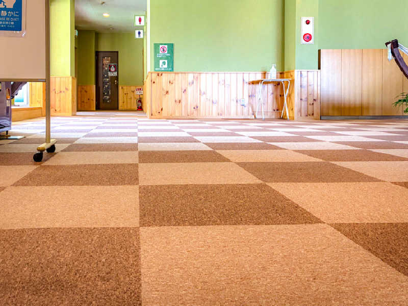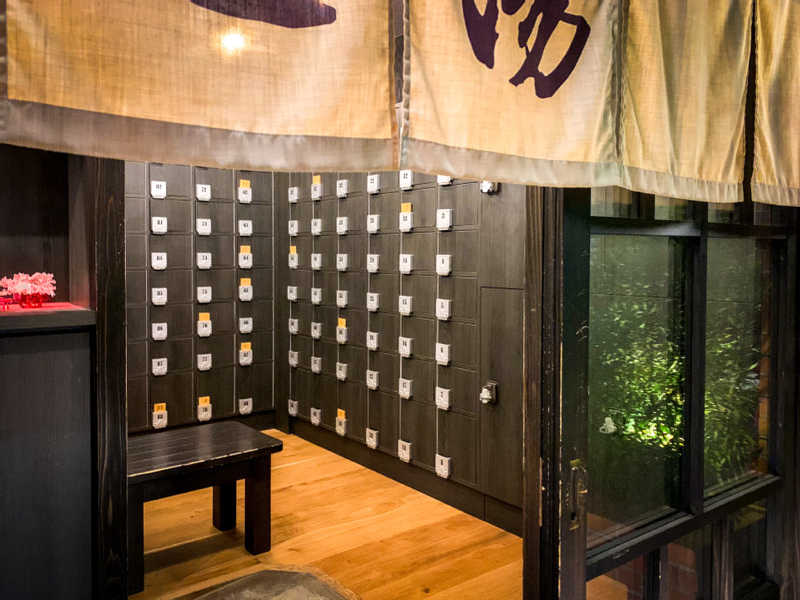 1.浴場入口でドーナツ型のサウナマットを借りる。