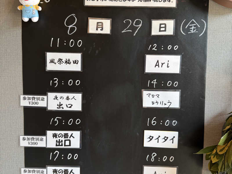 11:30頃イン 7月ぶりに会えたキヨエンジェルさん、今日は久しぶりにキヨエンジェルさんのアウフグース受けたいと思っていたら11:00の回で終わっていて涙😢