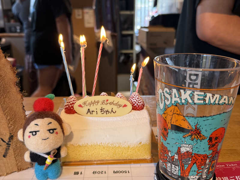 12:00からはAriさんのアウフグース🍎これまた3段目は怖いので2段目を死守⭐️クロモジ⁉︎のウィスクがとても良い香り👍🏻ジワジワあったまり、インフュージョンではいろんな香りが楽しめ、最後の山賊ロウリュではオマケの4発目を放ち、湿度計が完全に振り切れるのを目撃してしまいました🔥💣毎度Ariンゴ モグモグ💪🏻🍎で〆たと思いきやまさかの外気浴スペースで「Ariちゃんのスーパーシュワシュワハッピータイム」発動❤️🔥初期は「Ariちゃんのシュワシュワタイム」だったが名前が段々長くなってきている🤣👍🏻 とにかく今日も最高過ぎるサウナを味わえました❤️🔥❤️🔥❤️🔥 着替えて帰ろうとすると、Ariさんが誕生日だったのでスタッフの皆様かお祝いしていた所にチャッカリ参加させて頂きましたw Ariさんお誕生日おめでとうございます🎂❤️🔥