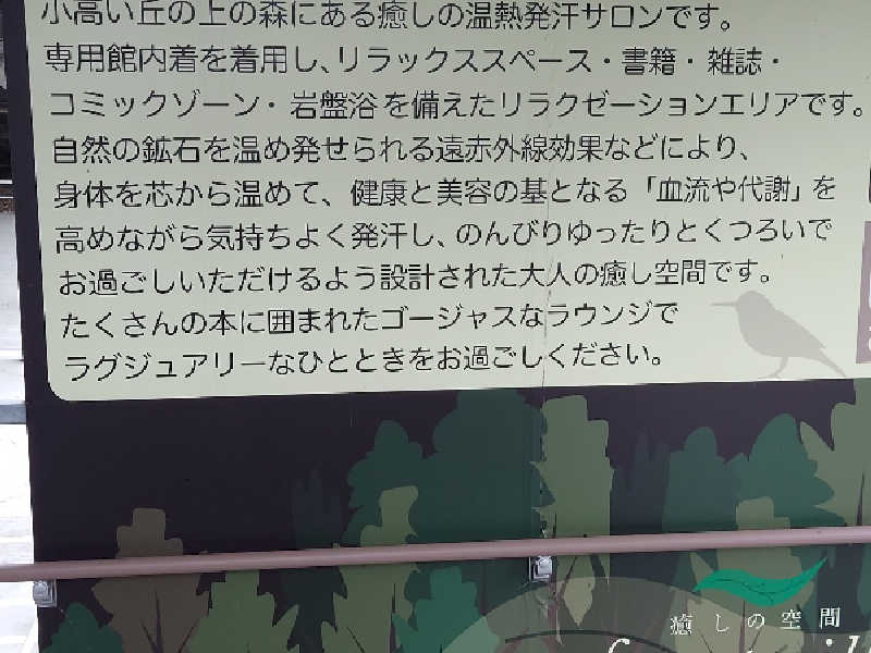 さて、館内ですが、今日はサウナは混んでなかったのですが、外気浴コーナーの寝転びエリアに2時間程全く動かない迷惑なおっさん共がいて、慢性的に混んでました。