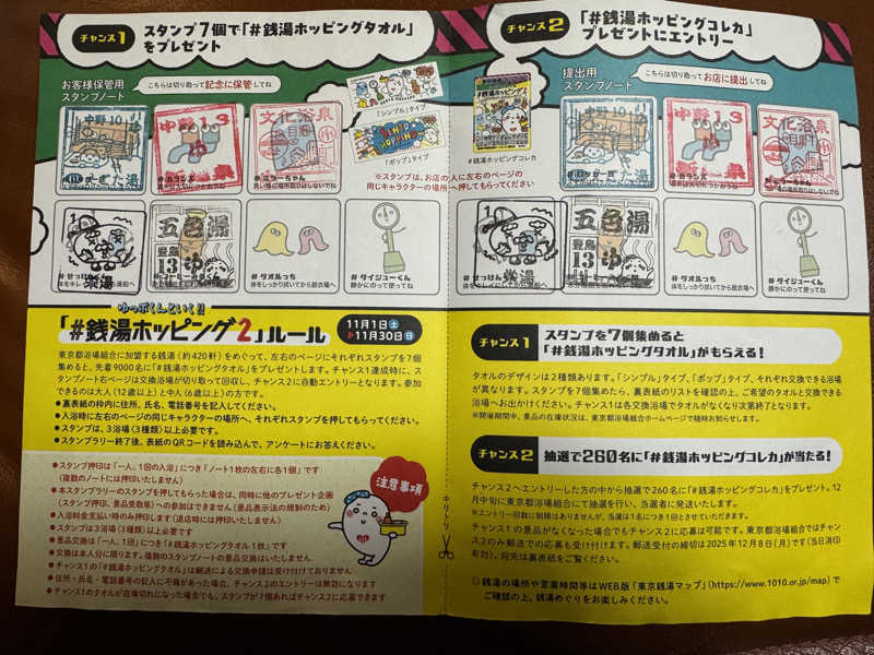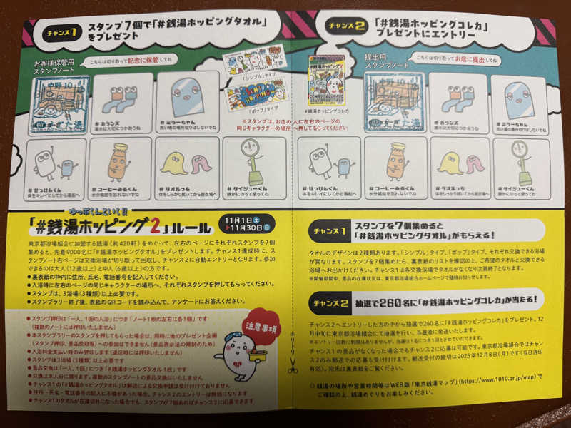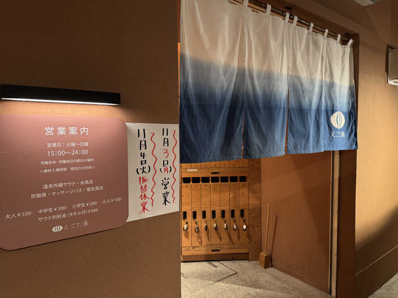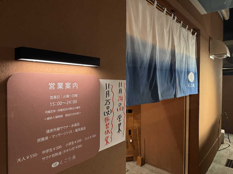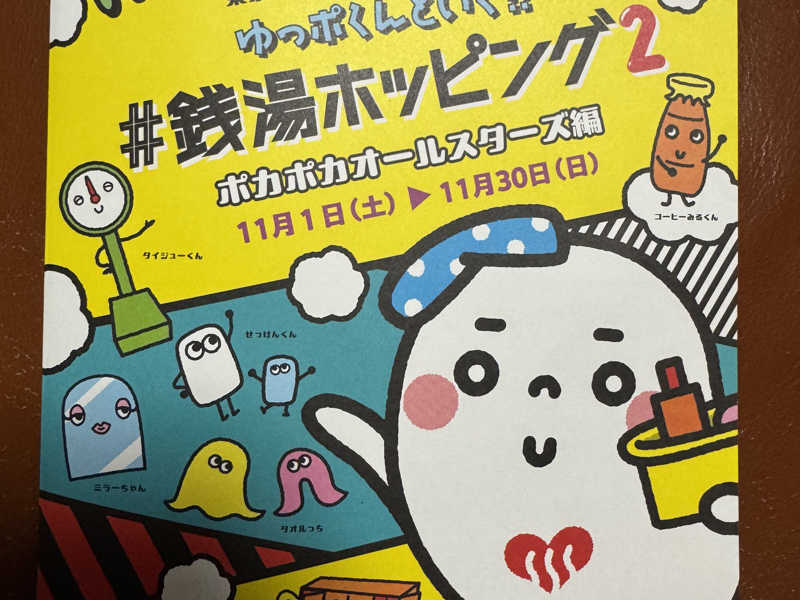 一言:行ってきましたよ、えごた湯!11/1から東京銭湯スタンプラリーゆっぽくんといく‼︎#銭湯ホッピング②が始まったのでホームサウナのえごた湯からスタート。1回目。22:00に到着。洗体からの熱湯で湯通しして、サウナ1セット目は8分。しっかり蒸され、水風呂からの脱衣所で休憩。その後、炭酸泉が空いてたので10分間血管拡張。えごた湯の炭酸泉は35℃ぐらいしかないので少し冷んやり。サウナ→水風呂→内気浴→炭酸泉→サウナ→水風呂→内気浴で終了。プレゼントのタオルは先着9,000名なので早くクリアしないと!
