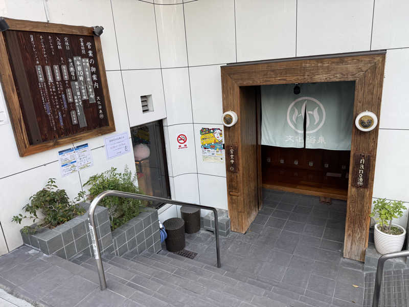 一言:行ってきましたよ、文化浴泉!#銭湯ホッピング②3回目。 行ってみたかった銭湯。コインパーキングの料金が高く、どこも1時間1,200円。周辺をぐるぐる回ってみたところライフの駐車場を発見!1時間600円。良かった。14:30到着。脱衣所に入ると結構混んでる。洗体してnano湯で湯通し。このお風呂気持ち良い。そしてサウナへ。サ室の前には既に5人待ち。サ室は90℃ちょいでストーブを挟んで奥側が2段で8人、手前側が2段で6人座れる。1段1段が高く良い感じ。20分毎にオートロウリュあり。熱さもちょうど良い。10分しっかり蒸されて水風呂へ。温度は15℃バイブラ付きでしっかり冷たい。休憩室はトトノイイスが13個で暗闇の中に間接照明のみ。今井健太郎さんらしい空間設計。扇風機2台が室内全体に風を送る。最高に気持ち良い。4セットしっかりトトノイました。常にサ室の前には待ちの列があったけど人気なのも納得。帰りにライフで買い物したので駐車料金も1時間サービスになりました♪